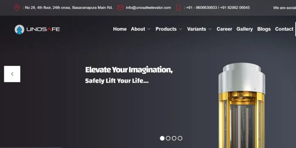 Unosafe focuses on safe passenger elevators and is an authorized vendor for government projects, making it a reliable name among the Best Elevator Companies in Bangalore. ISO 9001:2015 certified, they offer aesthetic variants from Uno Classic to Uno Luxury. In addition, their UNOSAFE Express System provides an innovative solution for quick emergency resolution in commercial and hospital settings.